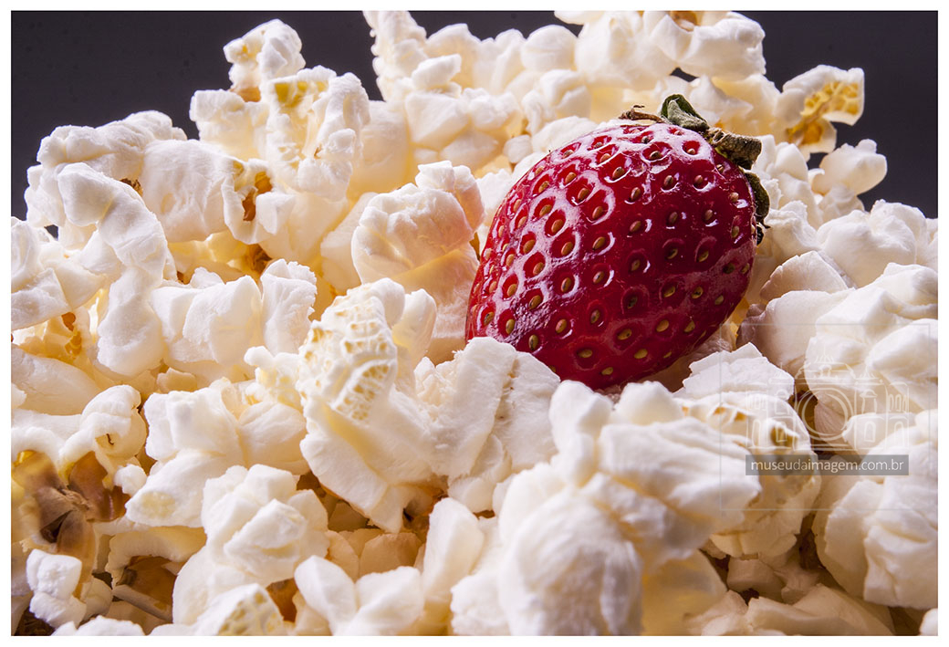 pipoca, morango