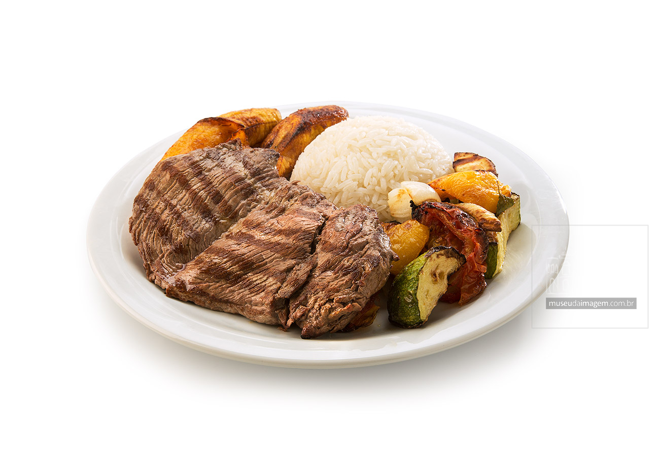 Companhia do Grelhado, filé, arroz, legumes grelhados, banana frita