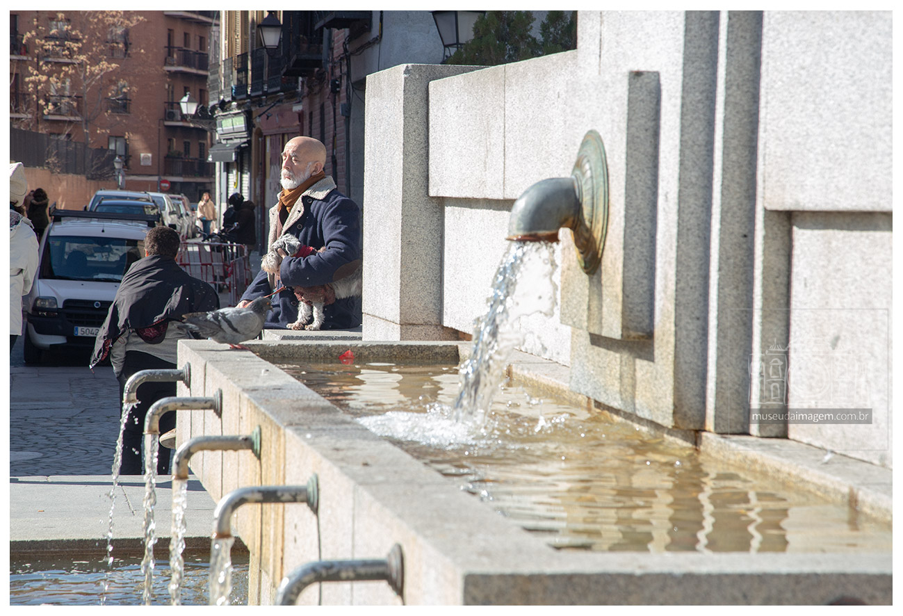 Espanha, fonte d`agua, homem, cachorro